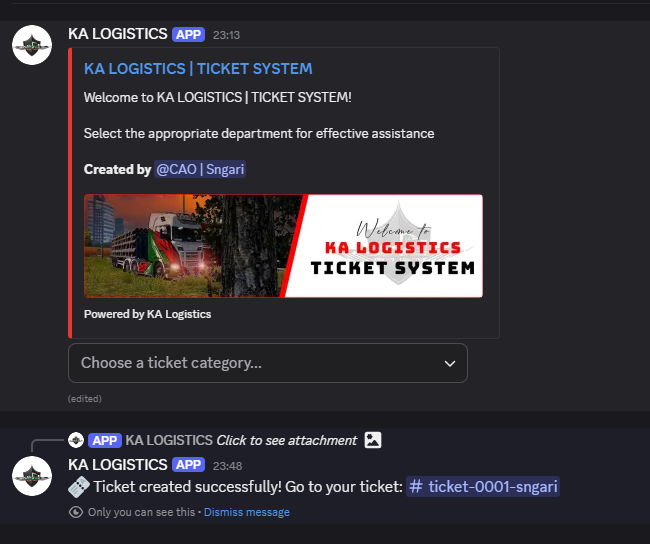 On behalf of the KA Logistics Development Team, I’m excited to share that we’re currently working on our own fully customised Discord Ticket Bot. This system is being built entirely from scratch to fit our VTC’s workflow, branding, and the growing needs of our community.